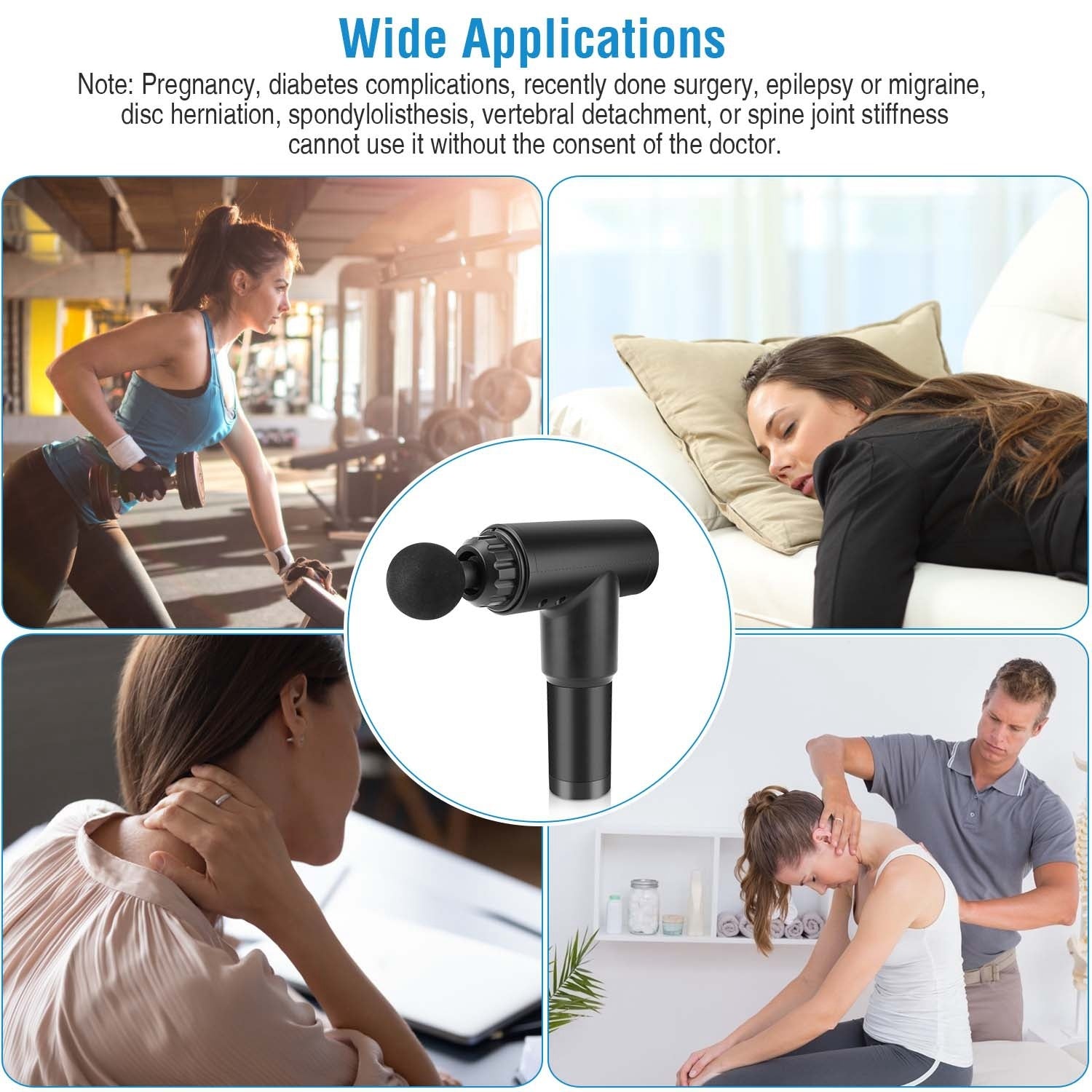 1. Pregnancy,diabetes complications,recently done surgery,epilepsy or migraine,disc herniation,spondylolisthesis,vertebral detachment,or spine joint stiffness cannot use it without the consent of the doctor.